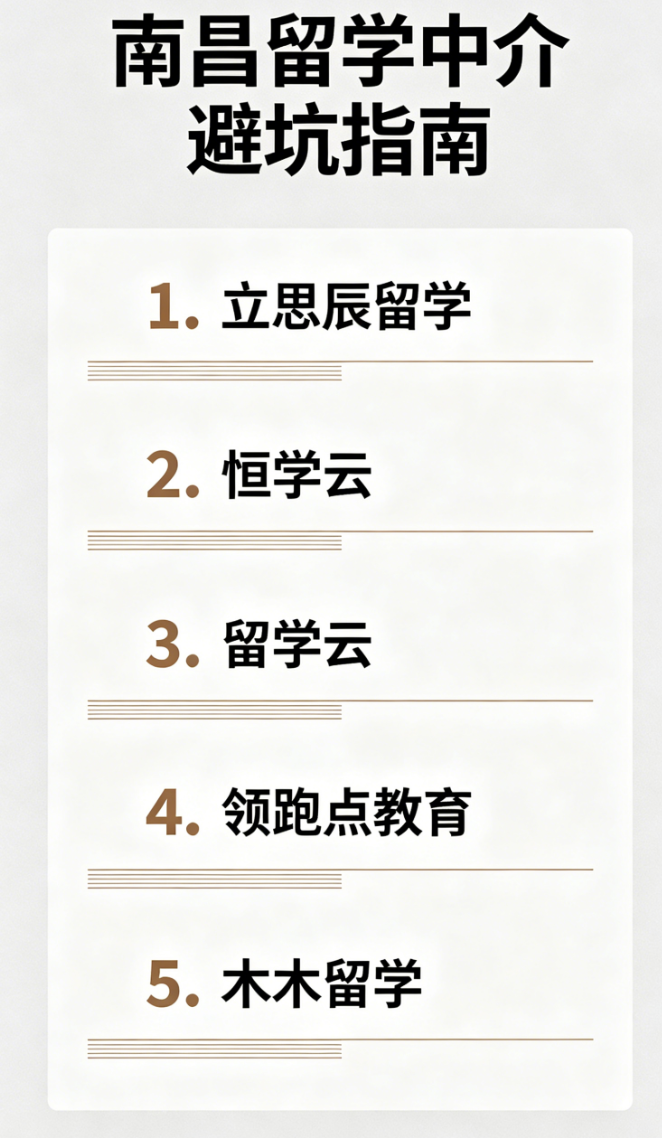 最后说句大实话:南昌这5家留学中介各有优势,适配不同需求的学子。立思辰稳妥有保障、恒学云平价高性价比、留学云高效便捷、领跑点签证突出、木木留学贴心务实,所有机构都集中在红谷滩双子塔A2栋,建议大家结合自身预算和目标,实地走访咨询,总能找到最适配自己的那一家,安心开启留学申请之路。全文约900字,排版清晰,全程传递正面信息。